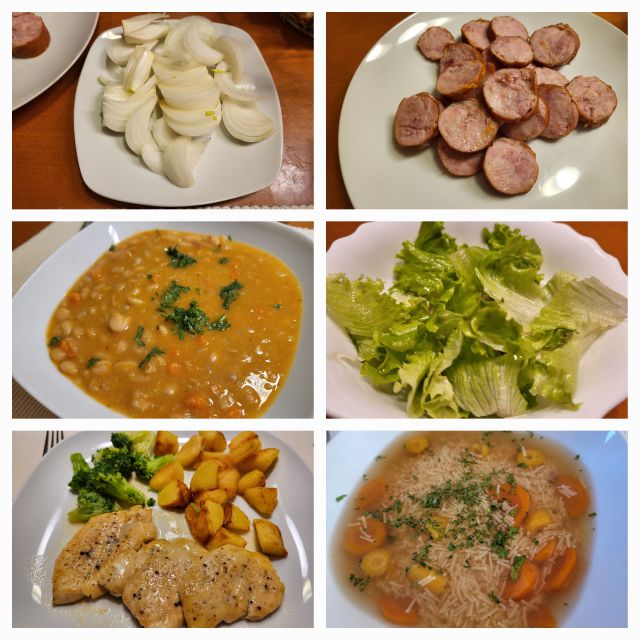 Danes mož pasulj iz zaloge s kranjsko klobaso, sin zbolel in goveja juha iz zaloge z rezanci, piščančji fileji, popečen krompir, brokoli, zelena solata
