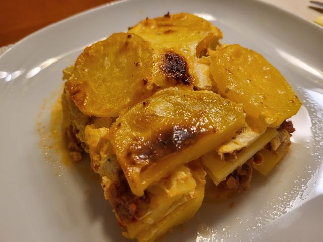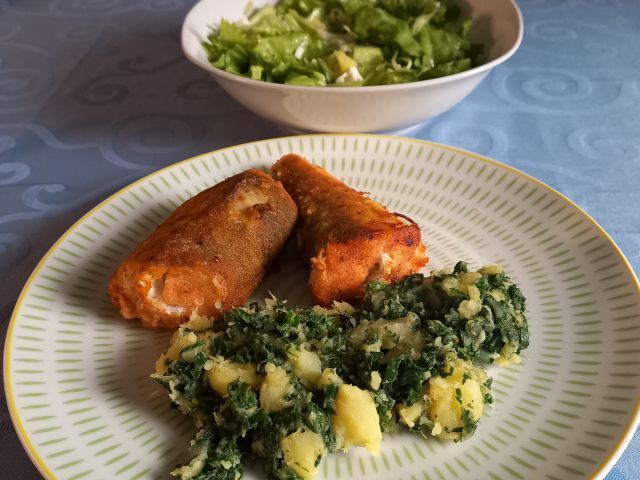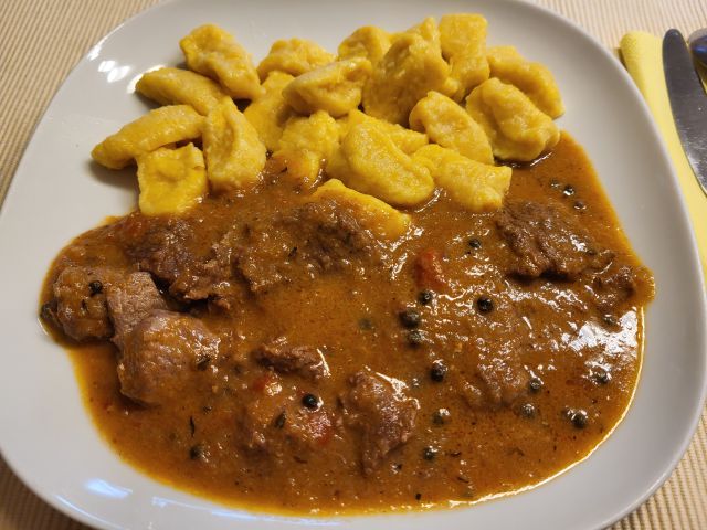 Nedelja ostanek zdrobih cmokov, goveja juha z rezanci, piščančji koščki v omaki, za enega ostanek govejih zrezkov in fileja sv.ribice, bučni njoki s skuto, solata