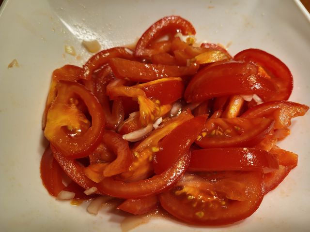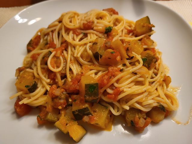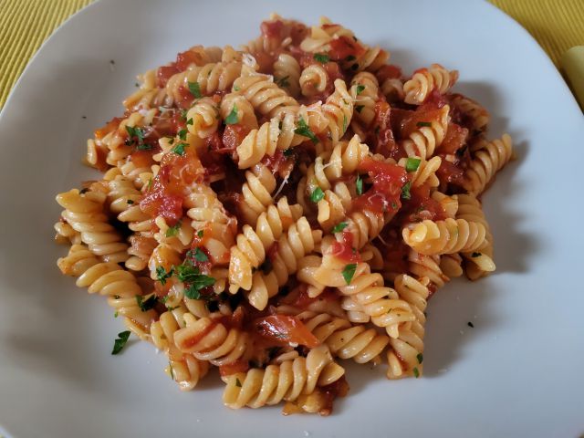V ponedeljek svedrčki s paradižnikovo omako, kasneje za moža zelenjavna omaka, stročji fižol v solati
