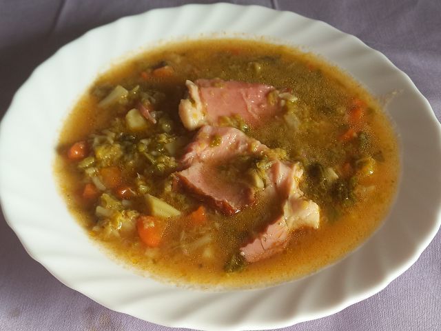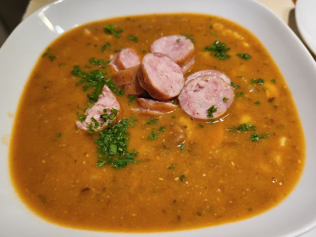 Včeraj fižolova juha s kranjsko klobaso, kruh, palačinke