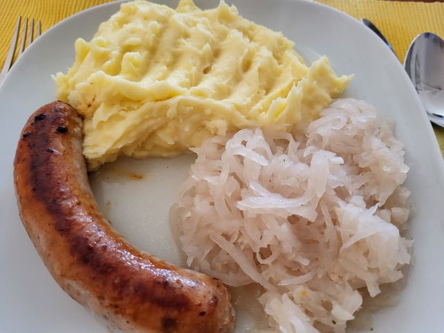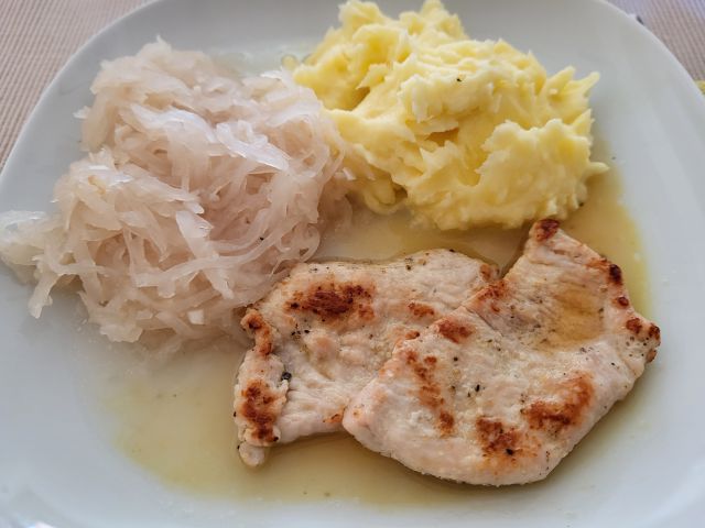Danes kisla repa, pire krompir, puranji zrezki, pečenica