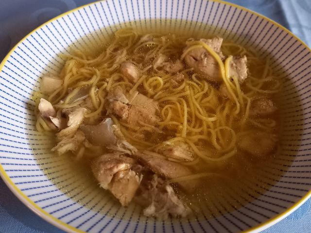 Kokošja juhica z domačimi rezanci; pečeno puranje stegno, mlinci; mešana solata, sadna solata, ostanki peciva, ![]()