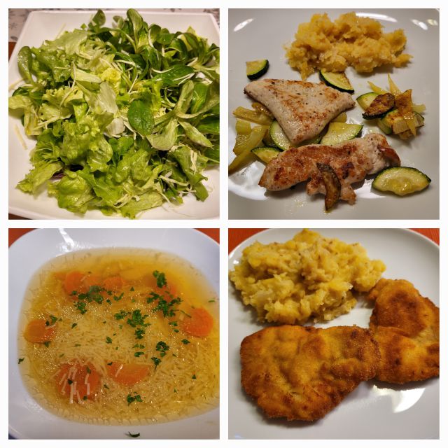 V torek goveja juha z rezanci, pražen krompir, meso po dunajsko, naravno pečeni zrezki z zelenjavo, solata
