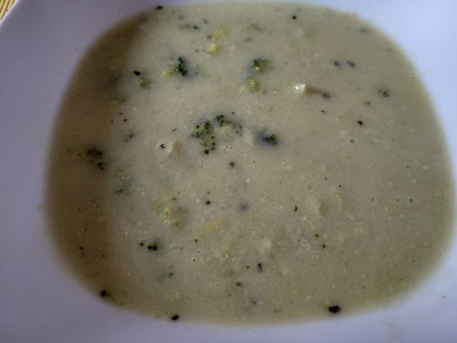 Danes brokolijeva juha, preostanek pečenke, piščančja mini pleskavica, pražen krompir, zelenjava, solata