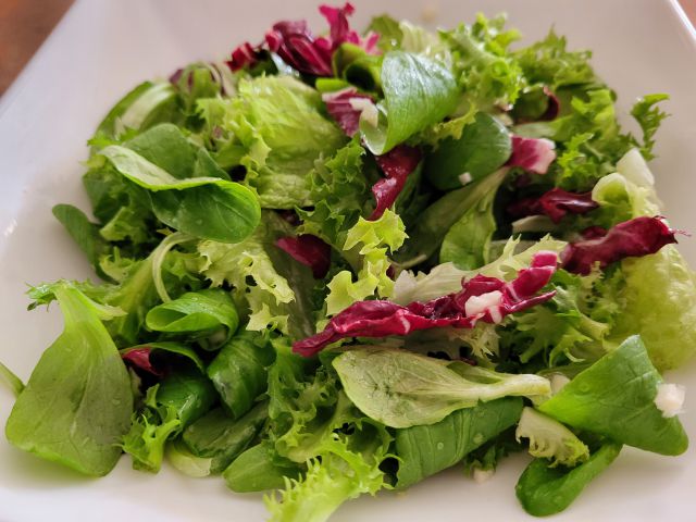 26.10 goveja juha z rezanci, omaka s čemažem in indijskimi oreščki, testenine, solata