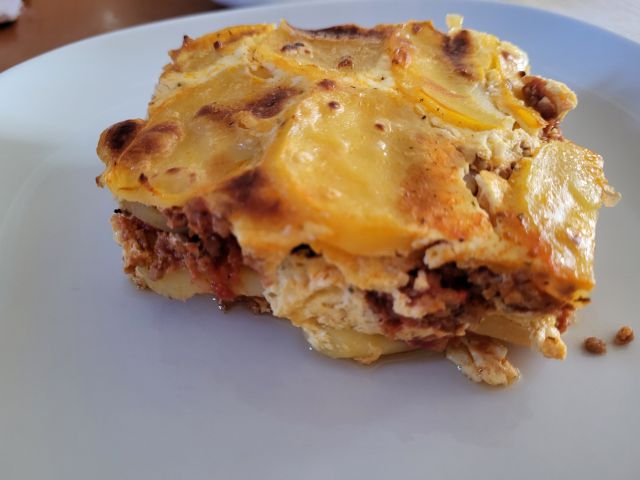25.10 goveja juha z rezanci, preostanek musake, solata