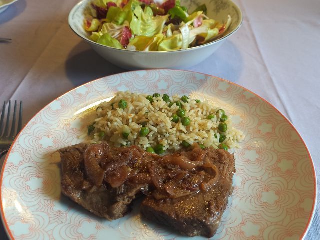 Goveja juhica; goveji zrezki, zapečeni štruklji, piščančji zvitki z jurčki, zaviti v slanino, večbarvni radič s ![]()