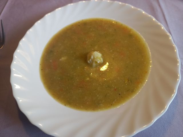 Kremna zelenjavna juhica (por, korenček, cvetača); popečena gov.iz juhe, čebula v kolobarjih; rizi-bizi; radič s krompirjem; ![]()