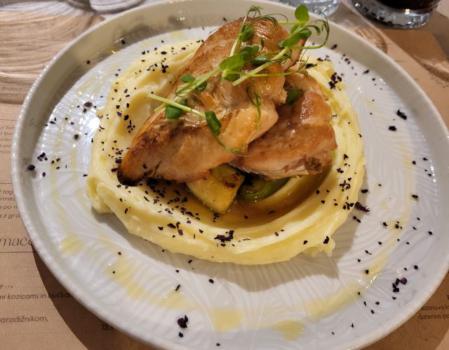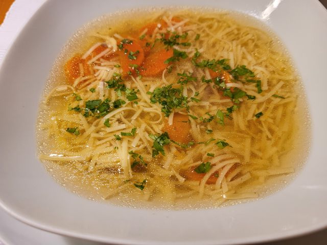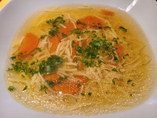 11.12.25 goveja juha z rezanci, svinjska ribica v omaki z zelenim poprom, pečeni piščanec, pečen krompir, solata