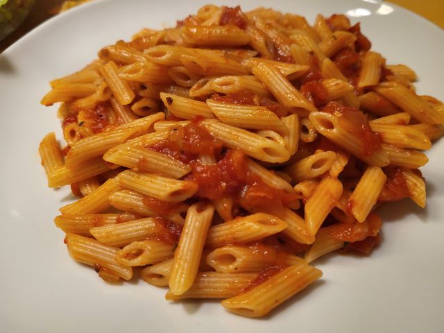 22.12. testenine s paradižnikovo omako in čilijem za moža, zame brezglutenski, solata