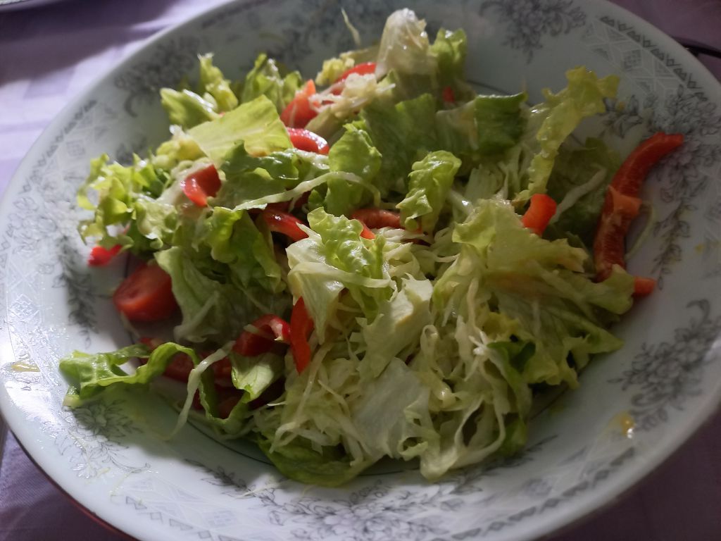Včeraj pasulj s klobaso, zelenjava, kruh.