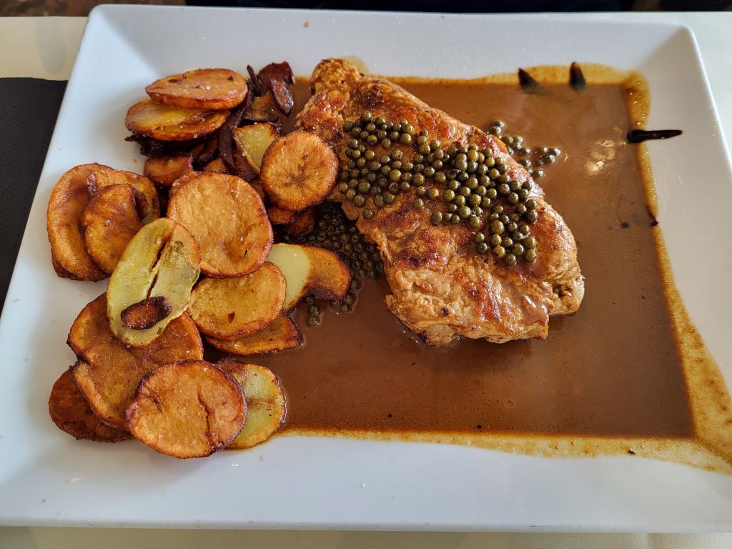 Danes puranje in svinjsko meso po dunajsko, zame file postrvi z mandlji, pražen krompir, mešana solata