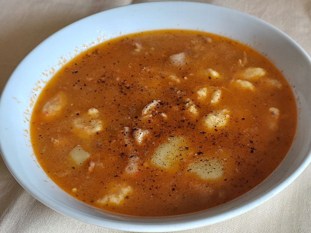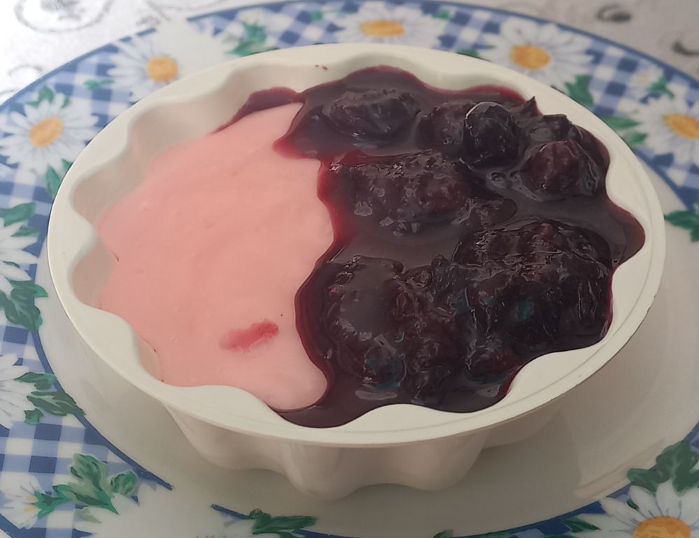 Enolončnica (reciklaža vampov, kuhane sv. nogice, žličniki); puding z borovnicami