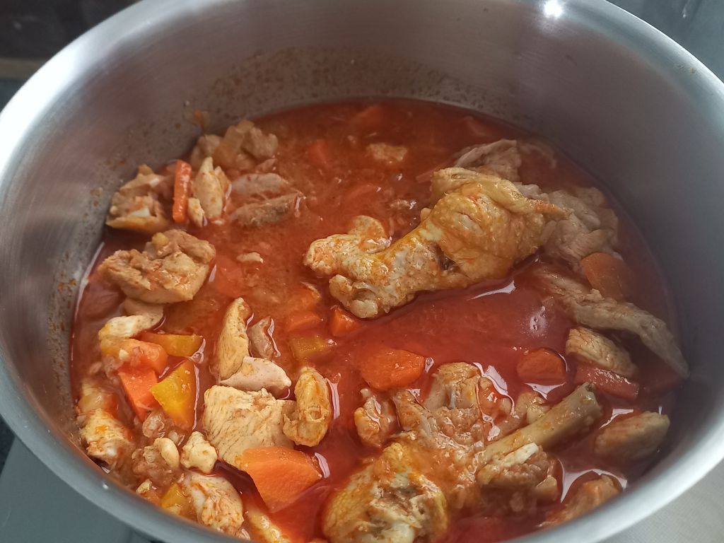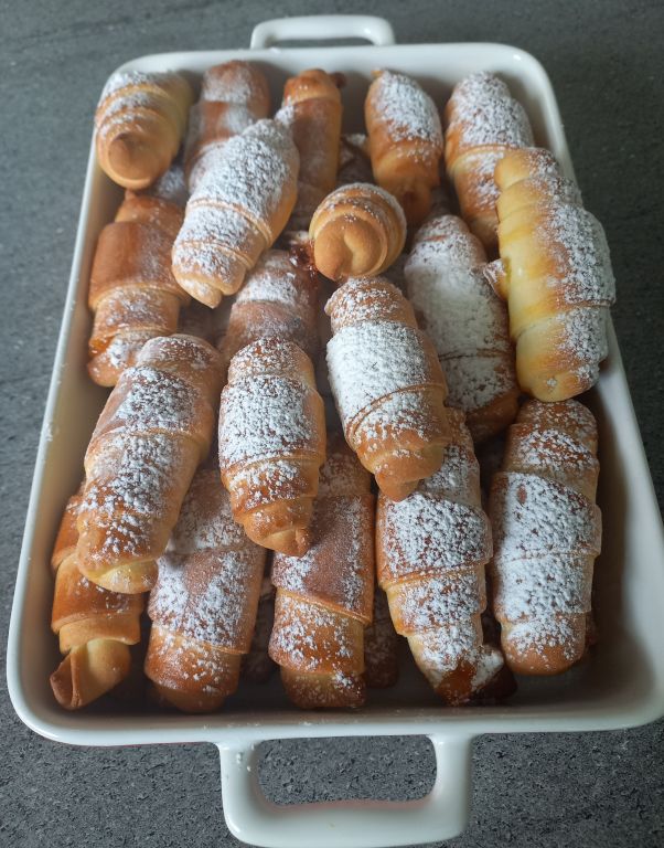 Piščančji paprikaš, fuži, zelena solata; kifeljčki