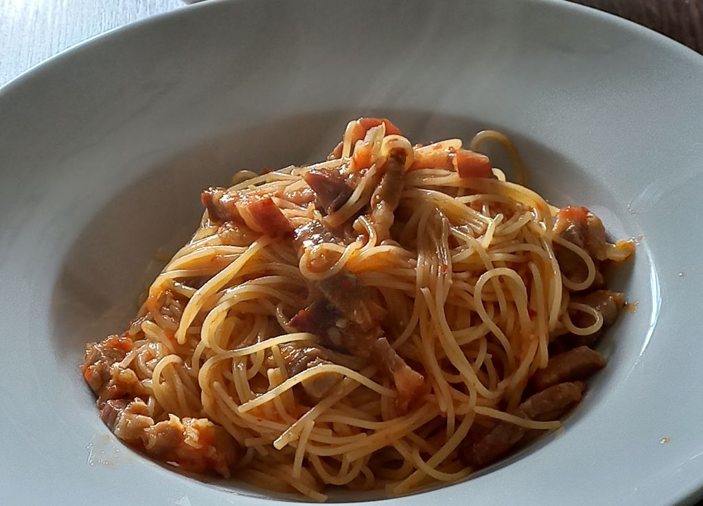 Milijonska juhica; špageti na slanini, paradižniku in česnu; rdeča pesa; kremšnita