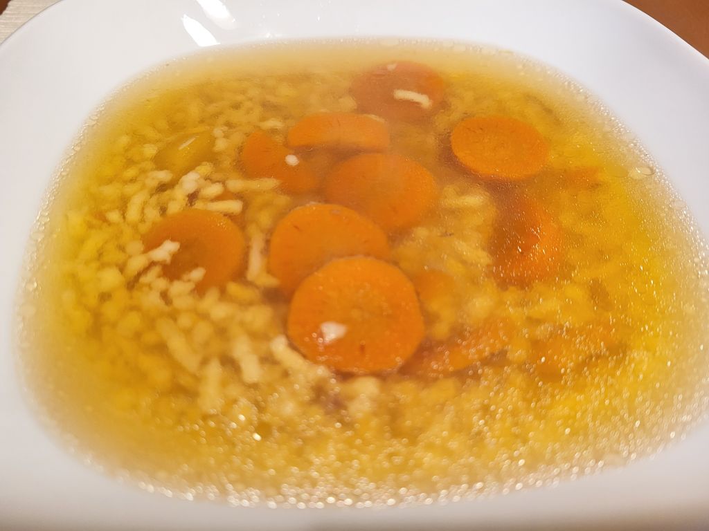 Enolončnica s sladkim zeljem in suhimi rebri; skutno-jabolčni štrudelj