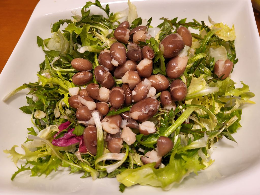 26.2. Za moža pasulj, klobasa,solata, sin tortilje, jaz nadev za tortiljo z rižem, solata