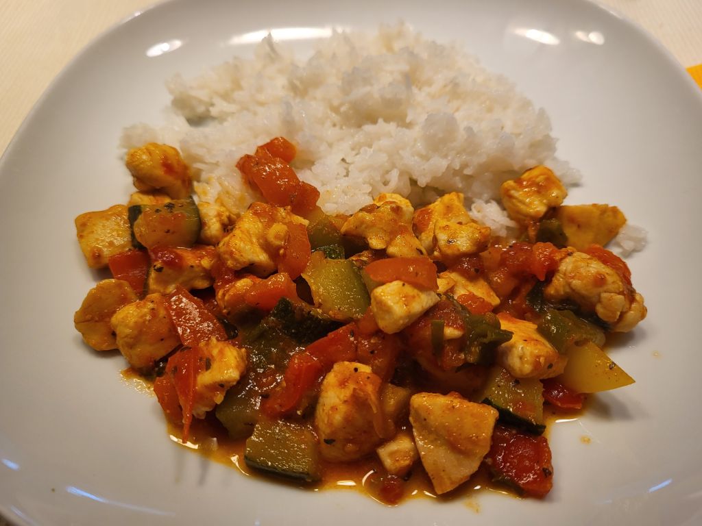 Piščančja juhica; sv.zrezek v čebulni omaki, rizi-bizi; zelena solata