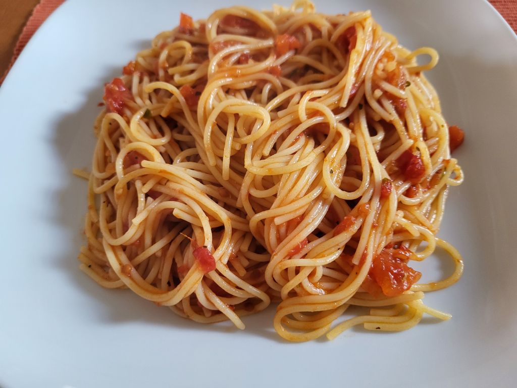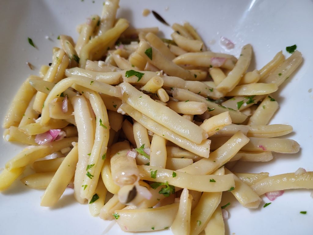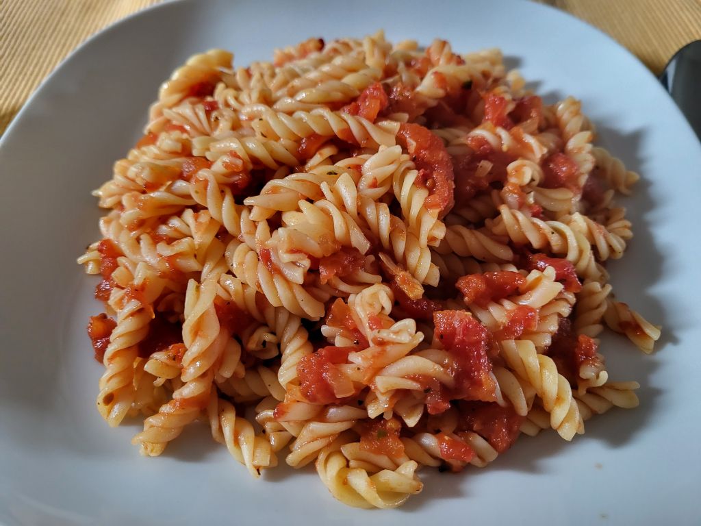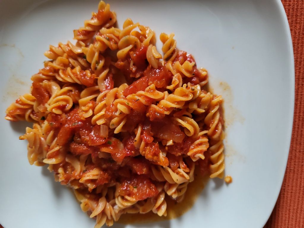 V torek testenine ( moji svedrčki iz rdeče leče) z domačo paradižnikovo omako, stročji fižol- ozimnica