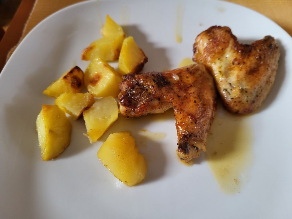 Danes mož preostanek fižolove mineštre, midva s sinom piščanca, krompir, solato