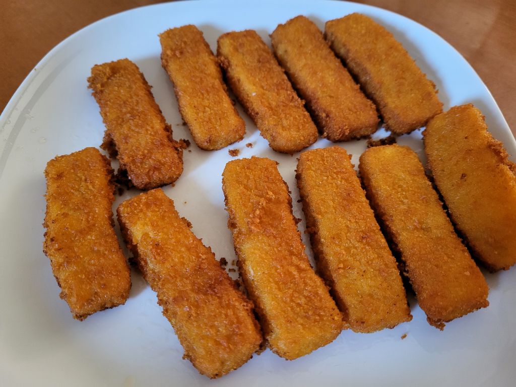 Včeraj tople kumare, ribje palčke, hrenovka, ostanki piščanca od četrtka, kruh