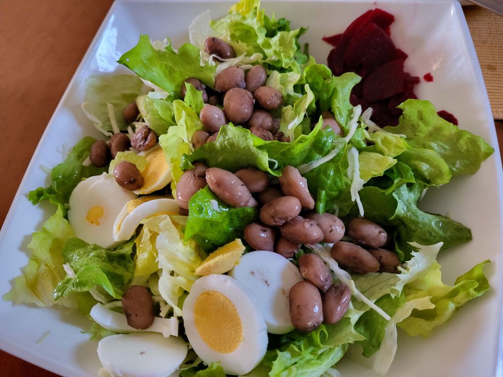 Danes mož preostanek fižolove mineštre, midva s sinom piščanca, krompir, solato