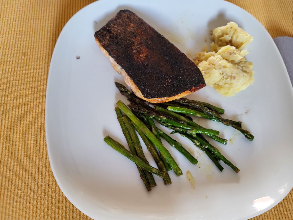 Danes za moja dva domača pizza, zame file lososa, šparglji, solata...
