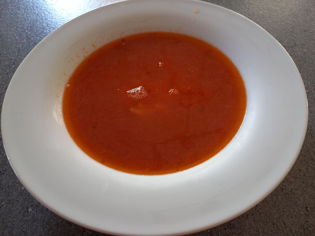 Paradižnikova juhica z rizoni; makaronovo meso; rdeča pesa