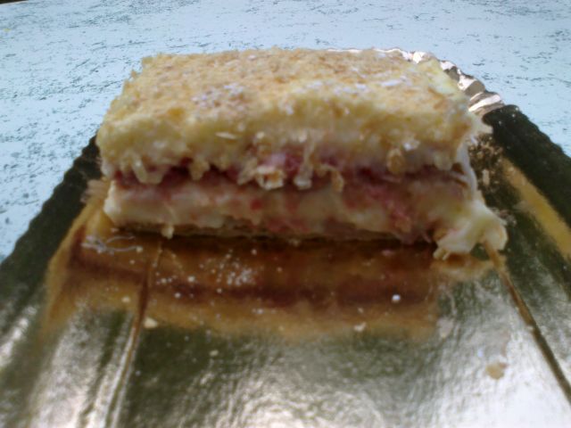 Ne vem pa, če je to popolnoma enaka krema kot pri kremšnitah, saj je bil okus malo spremenjen, pa ne vem ali zaradi jagod, ki so bile v sredini ali česa drugega. To so moje ugotovitve, saj pravega recepta žal nisem dobila.