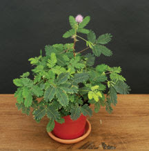 Tole je mimoza, prava, sramežljivka je njeno ljudsko ime, latinsko Mimosa pudica.