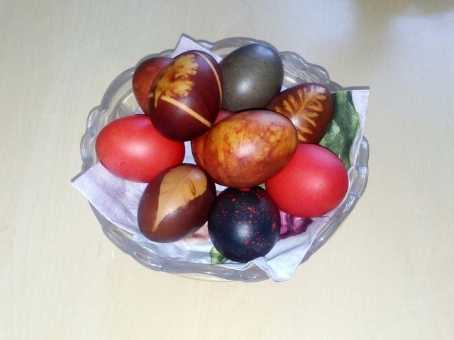 Jaz sem barvala kupljena jajca, ki so imela precej temno lupino - po mojem so tudi zaradi različnih jajc različni končni izdelki.