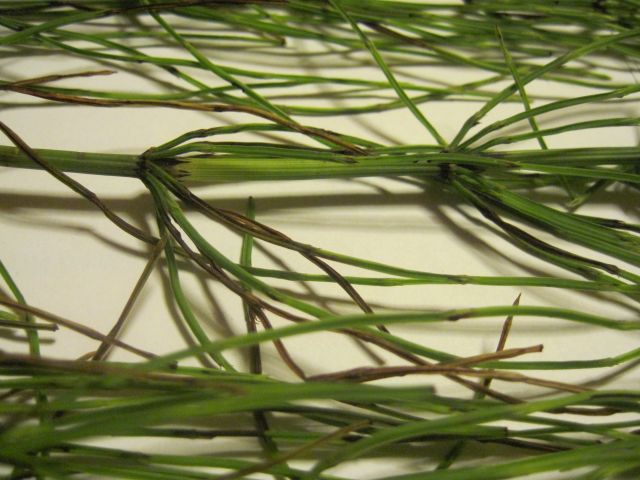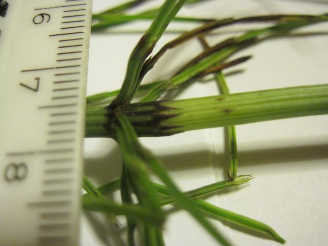Ima črna 'kolenca', raste pokončno, veje so obrnjene navzgor - kot pri smreki.