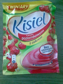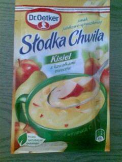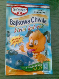 Na Poljskem imajo v vsaki večji trgovini ogromno vrečk s temi želeji, najrazličnejših okusov in struktur. Veliko jih je znamke Dr. Oetker in zato mi je grozotno žal, da jih ni tudi pri nas na prodajnih policah. Prvi dve slikici, na katerih piše slodka chwila in bajkowa chvila (menda naj bi to pomenilo sladki in pravljični trenutek, no, nekaj takega) sta želeja, ki ju rukneš v 1,5 dl vroče vode, premešaš, malo ohladiš, dobiš tako gostljato stvar, teksture želeja za lase, ki ima zame fenomenalen okus. Pa še pogreje te pozimi - namesto čaja