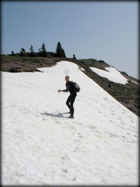 Ker sva se zadnje dva dni samo vozila naokoli na najinih dvokolesnikih (včeraj Prekmurje, predvčerajšnjim Obala in Kras) je bil danes skrajni čas uporabiti pešhondo in sva jo mahnila na Veliko Planino (od Calcita v hrib)....lepo vreme, ne prevroče, razgled za dol past, sneg za vzorec in ogromno cvetočega žafrana....![]()