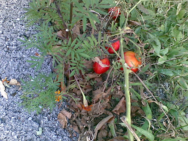 Pomagajte mi rešiti uganko, prosim: paradižnik na vrtu, več sort: ves črn, propadel, nikakav. Češnjev paradižnik, dva metra stran, v velikem loncu posajen, ob steni hiše, sicer ne pod streho (dež ga prav tako dobi, kot njegovo žlahto na vrtu) bujen, zdrav, čvrst, ogromno sadežev, jemo ga že celo drugo polovico poletja. Halo?????