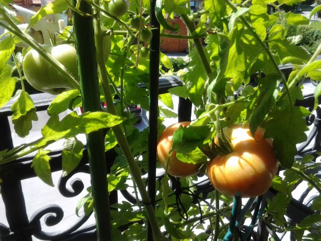 S pomidori je pa letos takole - seveda ne uživajo v plevelasti džungli, tudi polistnikov se nisem niti enkrat pritaknila in verjetno somi zato vsa volovska srca in podobjni, večji sadeži letos odpovedali sodelovanje.
