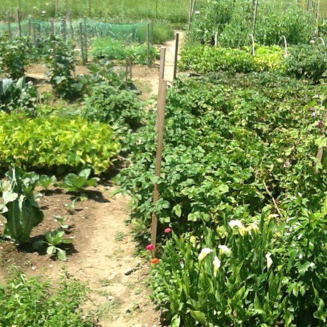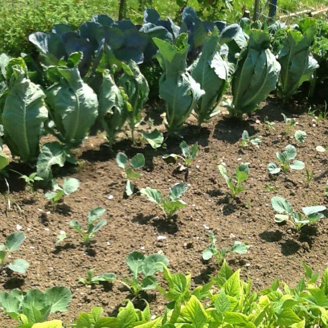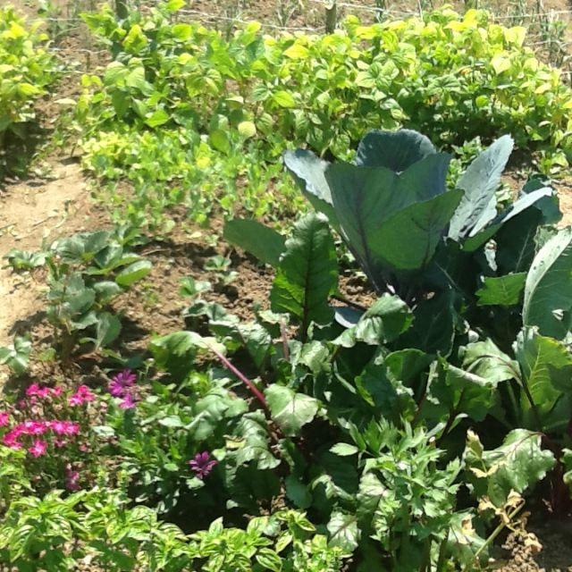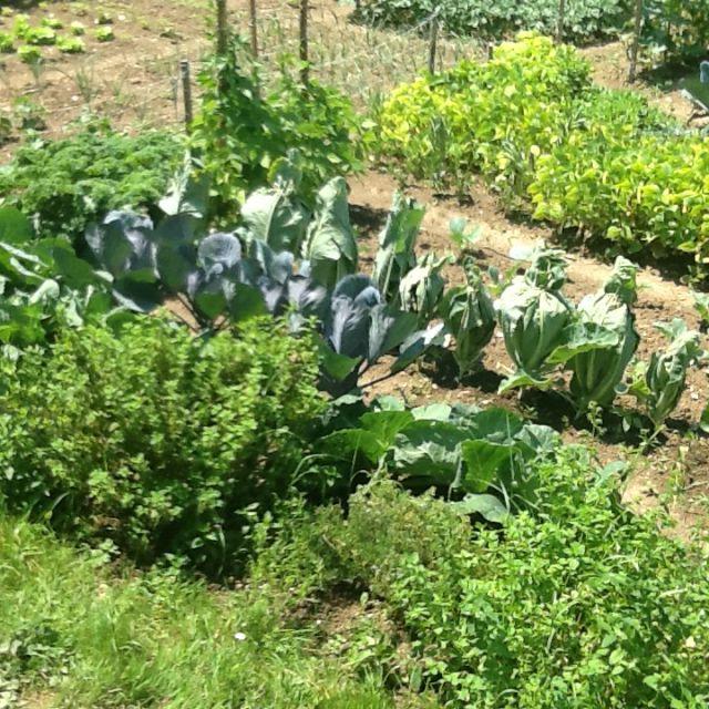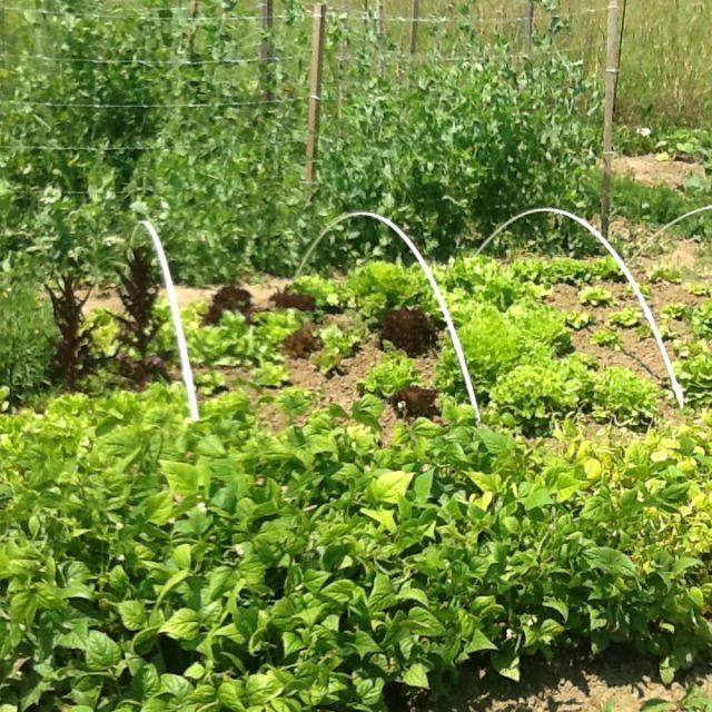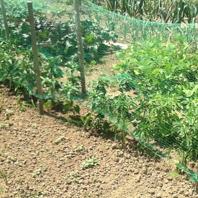 Cvetače so zaščitene pred soncem, da bodo bele, rdeče zelje počasi napreduje,novo zelje je posajeno, grah pa se polni...