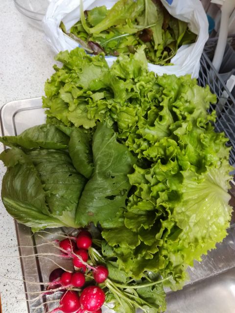 Jaz sem si lani postavila mali vrt skupaj s sosedi. Letos imam na njem jesenski česen in čebulo, zimsko solato, nove poflancane solatke, posadila sem krompir, posejala nizki fižol, kumarice, posadila dva paradižnika, redkvico sem pozno sejala, je zdaj pokukala ven, korenje posejala, peteršilj sadiko posadila, jagode že pridno cvetijo in delajo plodove, posadila sadike zelja, eno sadiko cvetače in ohrovta, da probam, če bo uspelo in tri sadike malancan, pa sedem sadik mini paprik, te pa sem sama uspela vzgojiti. Eto, dela bo dovolj, upam pa, da kaj uspe