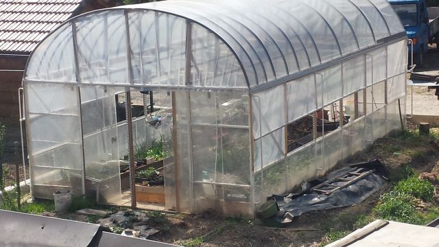 Mi smo lani naredili rastlinjak širok 4.2m dolg 7.5 m.Jaz sem načrtovala .mož je delal in mi vsi z njim.Dali smo polivinil in zdej me zanima kakšno zaštito rabim zaradi toče.