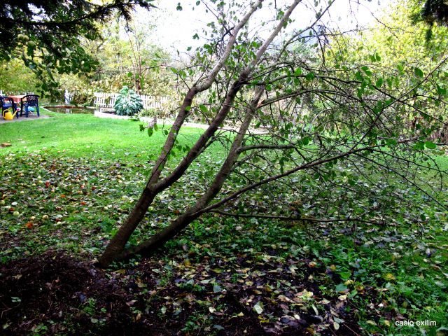 Pred veliko lwti je pri nas eno podobno sneženje napol izpulilo odraslo višnjo, na eni strani so ji vse korenine pogledale iz tal. Poravnali smo jo, močno pohodili prst nad delom, ki je bil izpuljen, jo privezali in podprli tako, da je imela oporo in korenine, ki so bile izpuljene, niso nosile teže čez zimo. Še mnogo let nam je rodila.