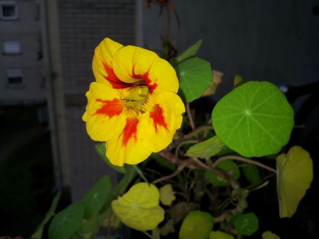 Kar je meni zanimivo je tole, nekaj časa nazaj sem napisala glede barve pri kapucinkah...na oranžni kapucinki, ki je cvetela do zdaj na levi strani korita in je imela same oranžne cvetove junija-avgusta se je sedaj oktobra odprl en sam samcat cvet in mislim, da jih letos ne bo več imela vsaj tako kaže...ampak cvet je rumen z rdečimi progami?!? kako je to možno? prilagam sliko. Imela sem samo dve rastlini, na levi in desni strani korita sem posadila po eno rastlino obe oranžni...res me fascinirajo te kapucinke zadnje čase