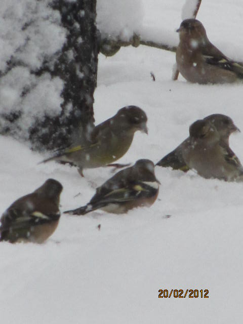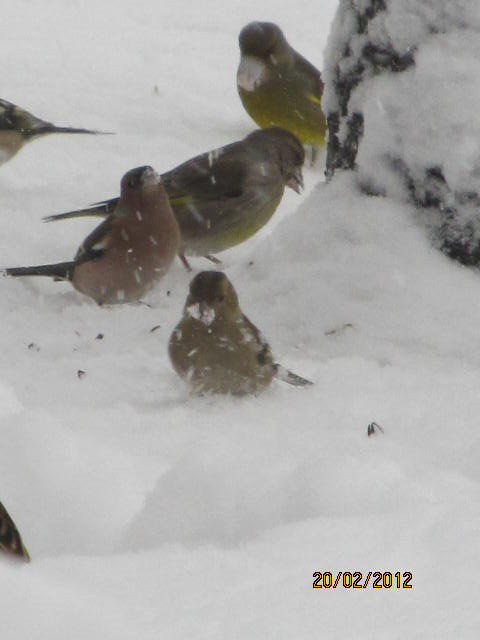 Kara,mislim da je na prvi sliki Dlesk.Jih je tule kar nekaj in so kar precej večji od vrabca.