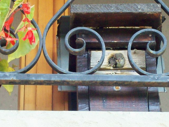 V hišici sta pa vrabčka, slikano je s terase, sta tako vpila, da ju ni bilo mogoče spregledati.