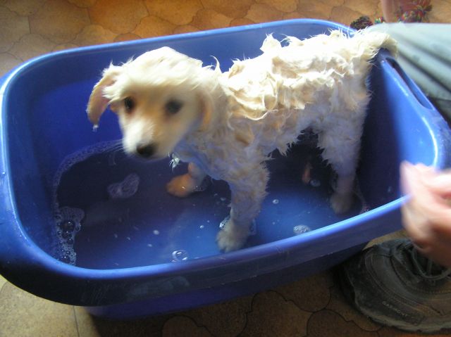Upam, da ste mirno prespali noč. Če je niste, vam mogoče lahko pomaga ura, ki tiktaka (če jo še kje staknete). Sliši se trapasto, ampak pri prvem našem kužku je odlično pomagala, pri drugem pa ne tako zelo, se je pa do neke mere umiril in ni prejokal cele noči.