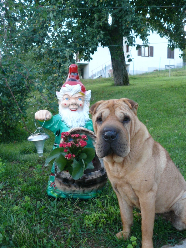 To pa je naša shar pei-ka Lotty, ki pozira ob Srečkotu.