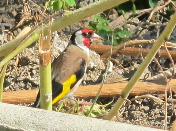). Tista " štibla " ko se vidijo so polomljene sončnice, ki sem jih pustil, da dozorijo, in so jih ti ptiči obirali. Bilo jih je več in so skos neki " žvrgoleli ", ne prav glasno, ampak skos.
