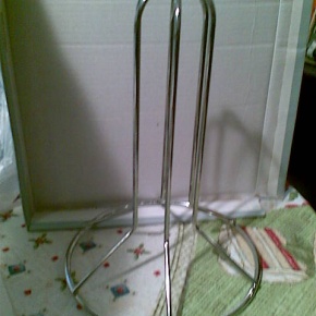 Jaz imam takega (no, imam še enega glinastega, kupila v Prekmurju, imajo jih vsako leto na celjskem sejmu), položiti ga moraš na krožnik oz. na pekač, da ti ves sok ne steče v pečico in se ne prismodi), mislim, da je bila cena okrog 10€, imajo jih pa v vsaki malo večji trgovini na oddelku s kuhinjskimi pripomočki. Rečeš pač - stojalo za peko piščanca.