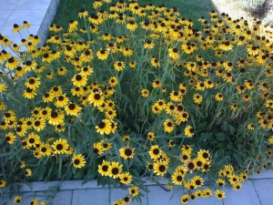 Jaz sem ravnokar podarila prijateljici eno vrst rudbekije, ker je bila za moj vrt odločno previsoka (cca 2 m). žal pa ne vem, kako natančno se ji reče. Cveti od začetka julija in zdaj, ko smo jo izkopali in porezali, je imela še ogromno lepih rumenih cvetov.