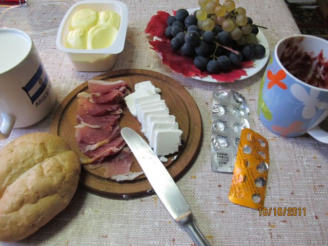 Danes: ajdov kruh, peöena jajčka in kapučino.