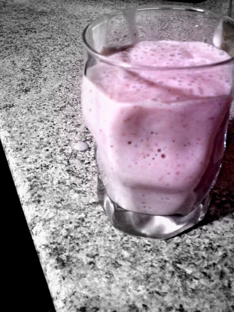 Danes sem si naredila napitek iz: polovico banane, par jagod in malo navadnega LCA jogurta